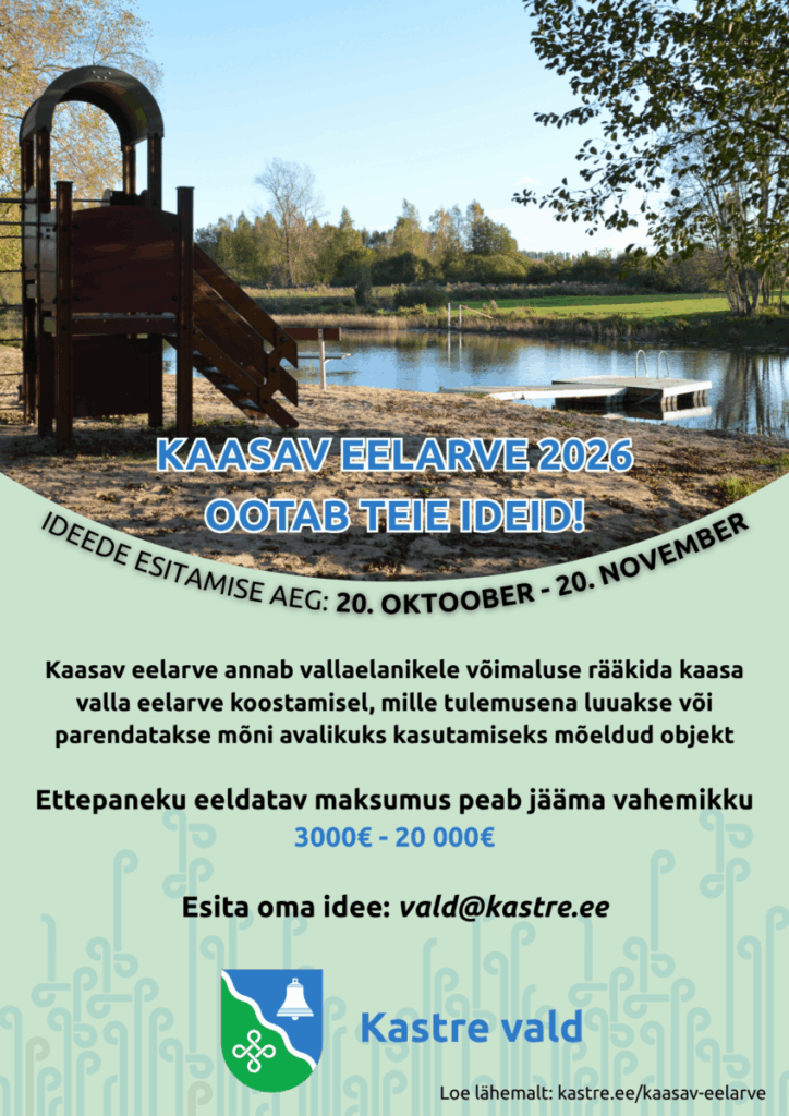 Kastre vallavalitsus alustab taas kaasava eelarve tegevustega ning ideid valla kaasavasse eelarvesse oodatakse 20. oktoobrist kuni 20. novembrini 2025.